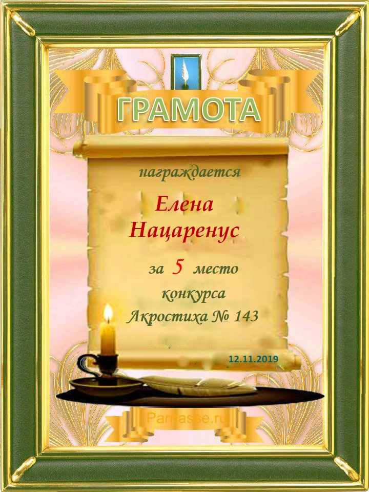 Грамота за 5 место в 144 конкурсе АКРОСТИХА (Альтернатива)! ПОЗДРАВЛЯЮ!