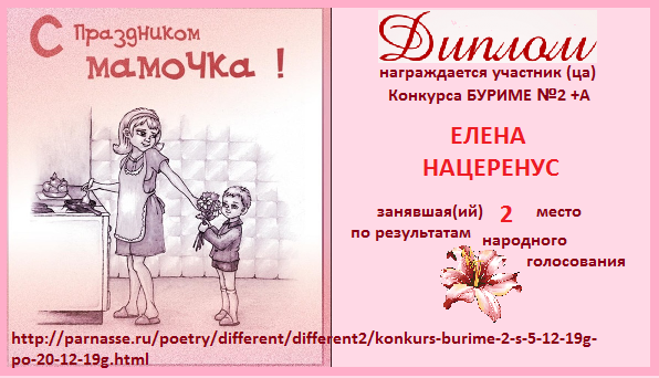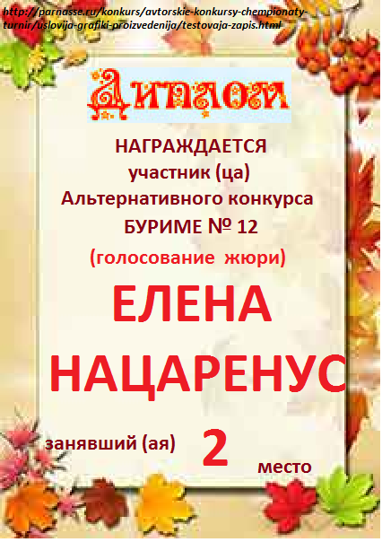 Диплом за 2 место в 1 годовом итоговом конкурсе АКРОСТИХА (Альтернатива)! ПОЗДРАВЛЯЮ!