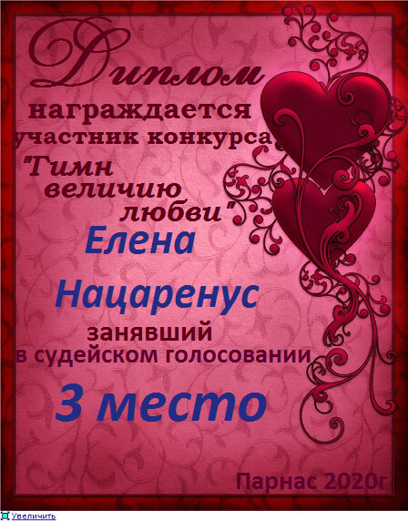 Третье место в судейском голосовании по итогам конкурса "Март - мелодия Любви!"
