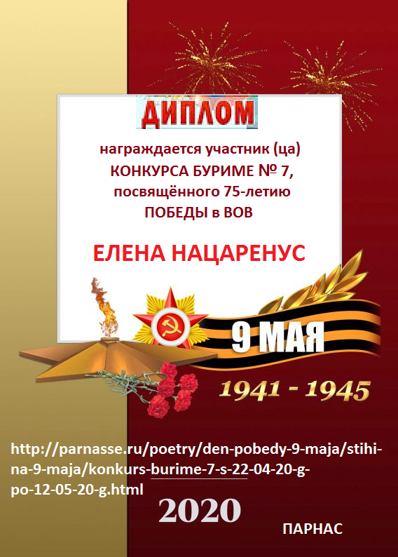 Второе место в конкурсе "О Победе с гордостью, о павших с почтением" (По оценке судей. За произведение "День Победы")
