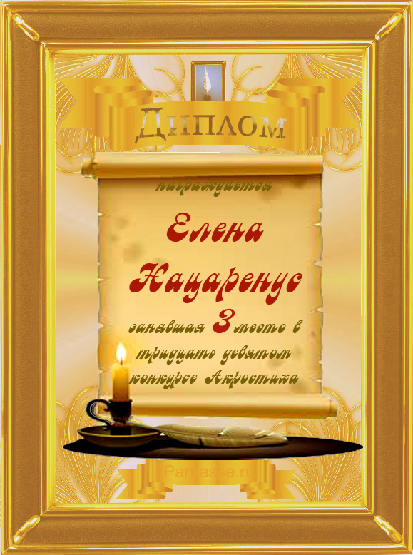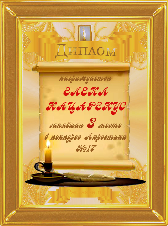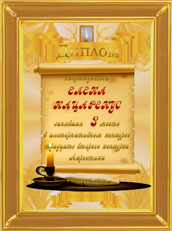 Диплом за 3 место в 138 конкурсе АКРОСТИХА (Альтернатива)! ПОЗДРАВЛЯЮ!