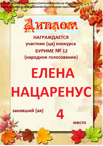 Грамота за 4 место в 139 конкурсе АКРОСТИХА (Альтернатива)! ПОЗДРАВЛЯЮ!