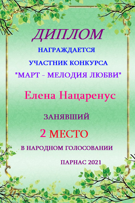 Второе место в народном голосовании по итогам конкурса "Март -мелодия любви"