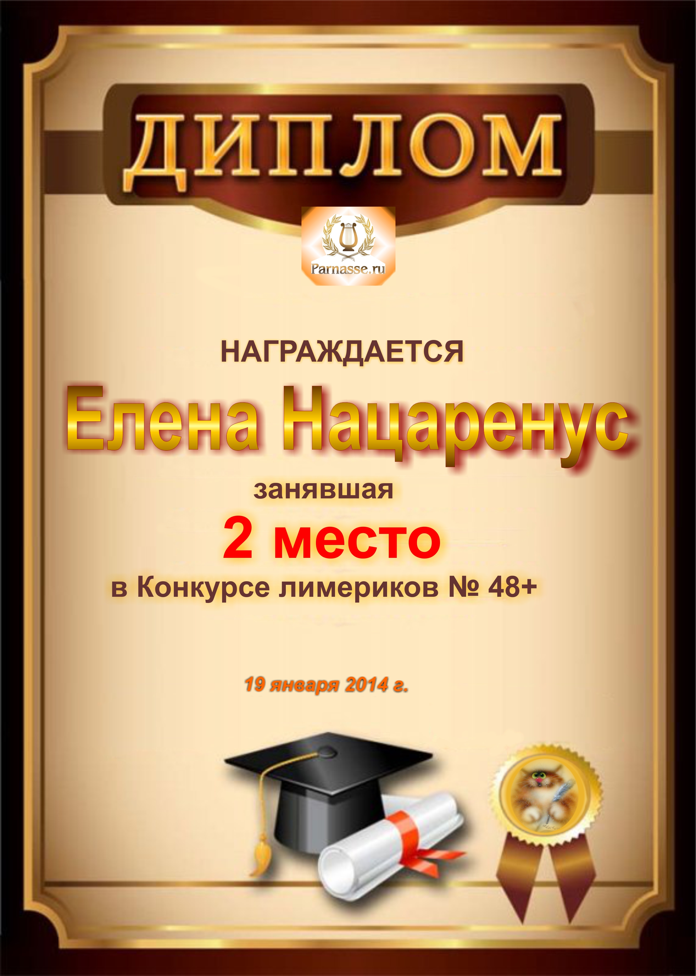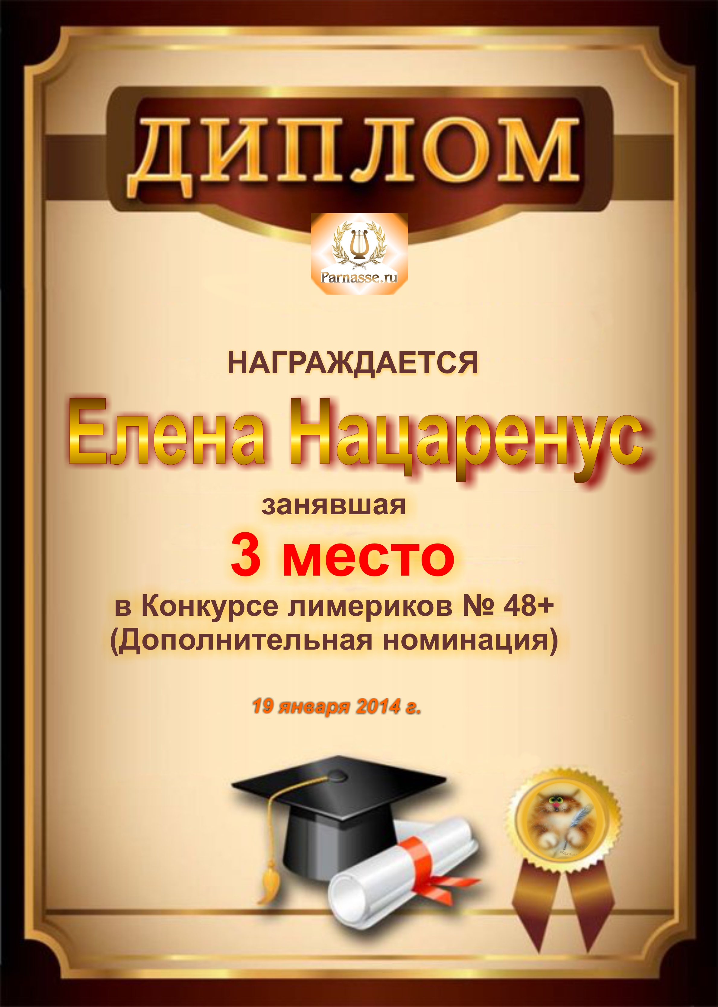 Диплом за победу и 3 место в дополнительной номинации конкурса лимериков № 48+ (19.01.2014г.)