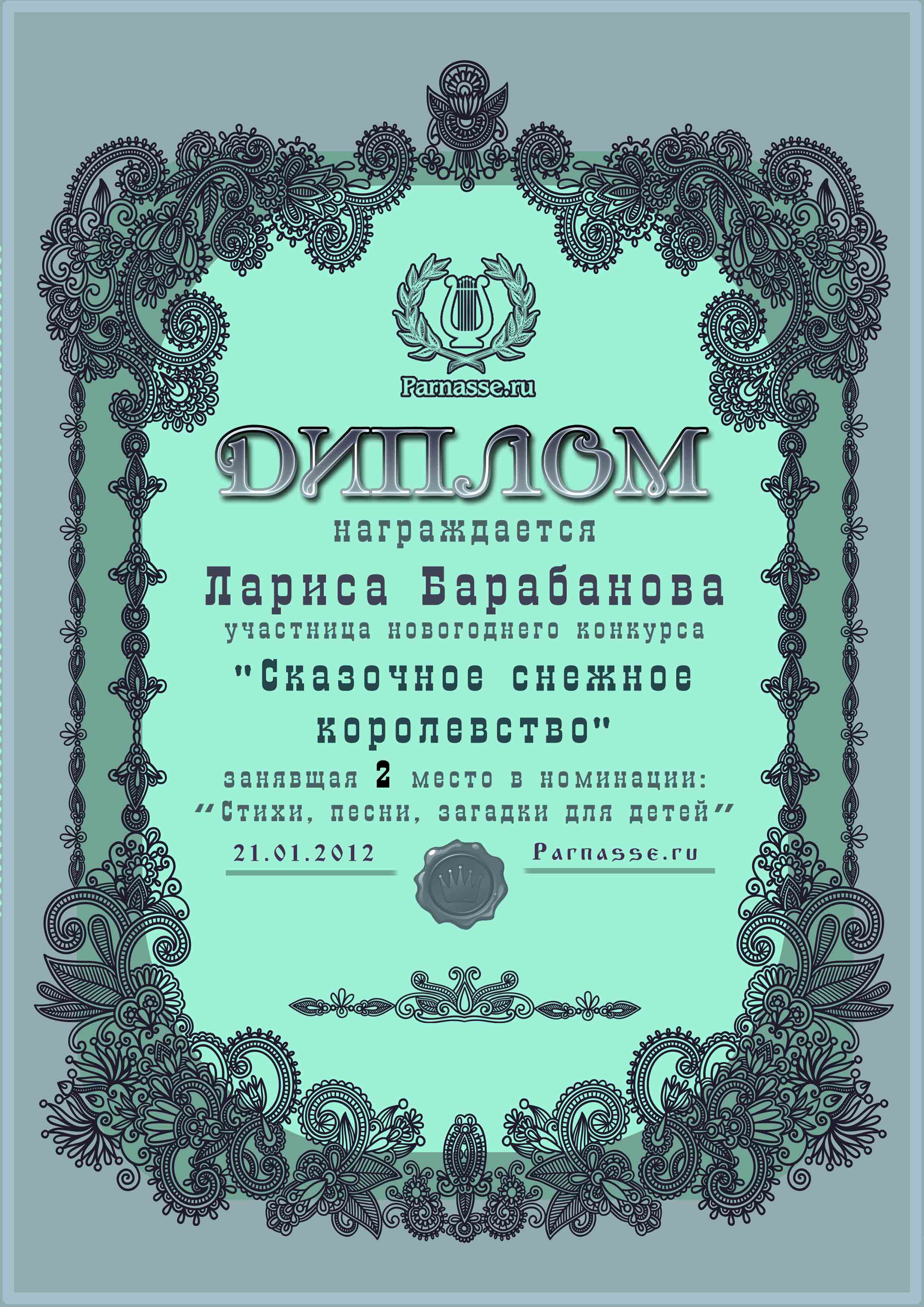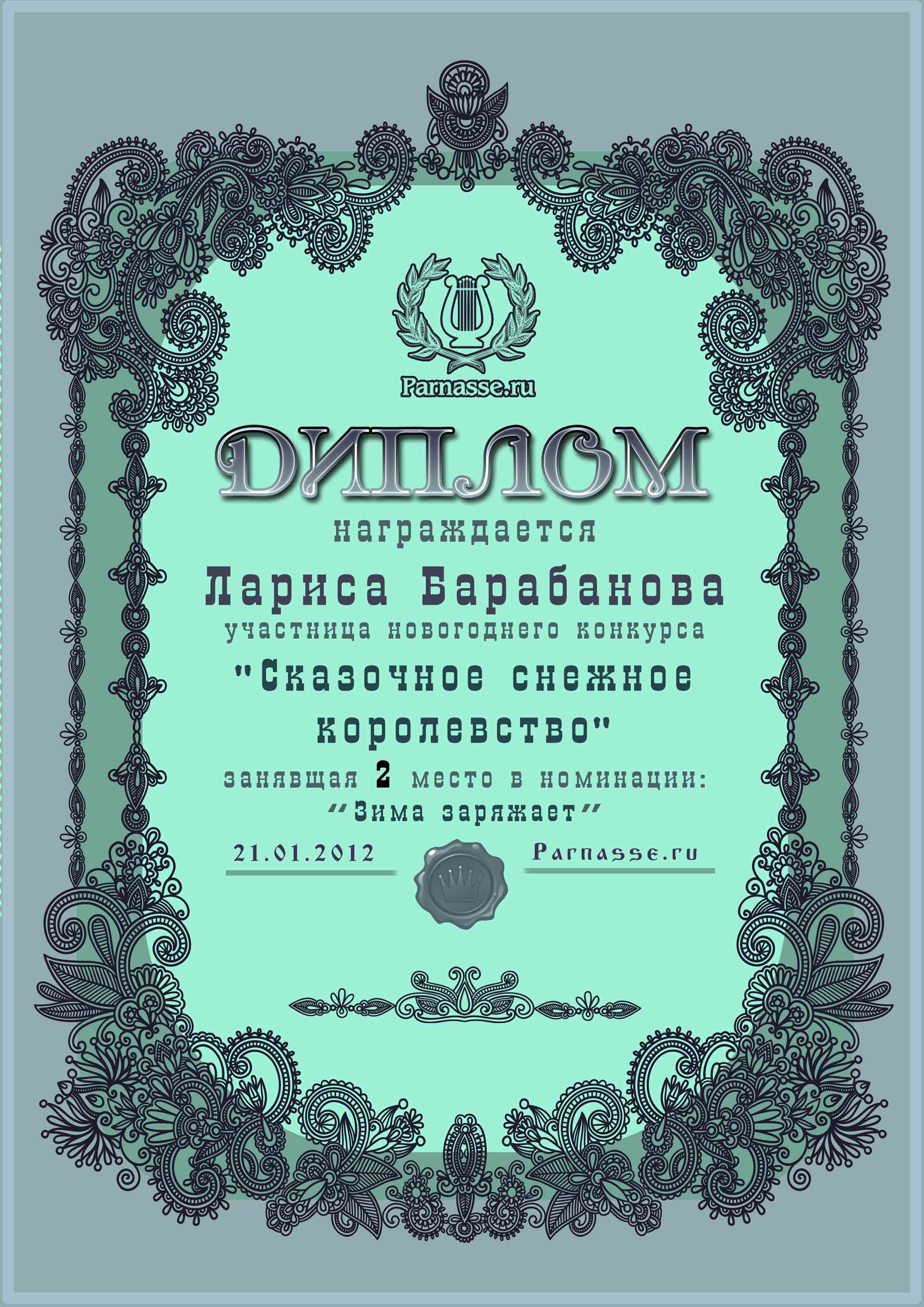 Диплом за 2 место в конкурсе "Сказочное снежное королевство!"