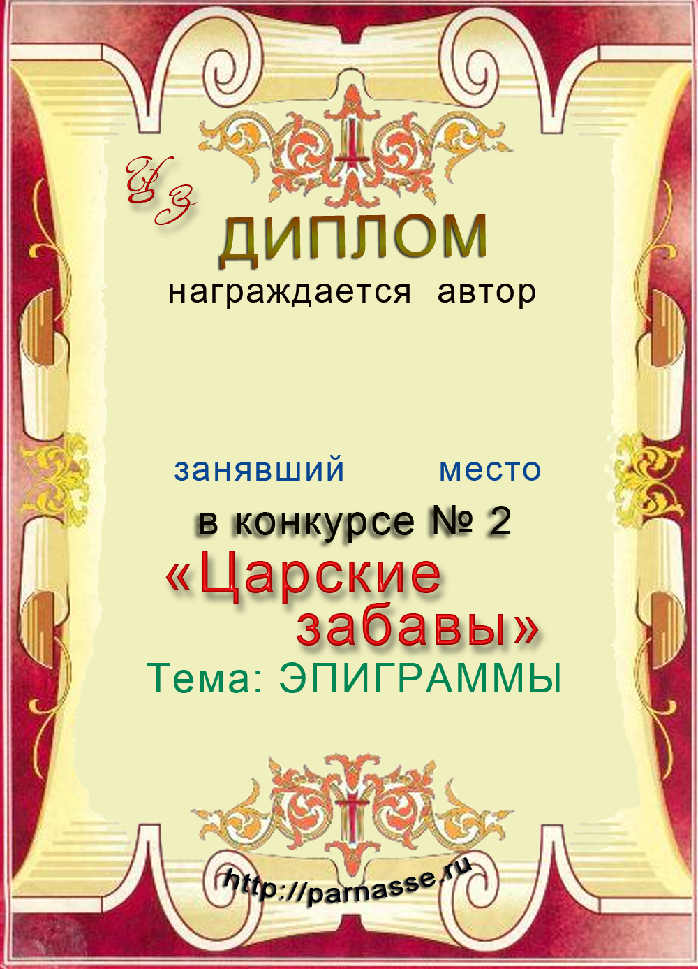 Подарок от: Конкурс "Царские Забавы", 1 ноября 2016:
