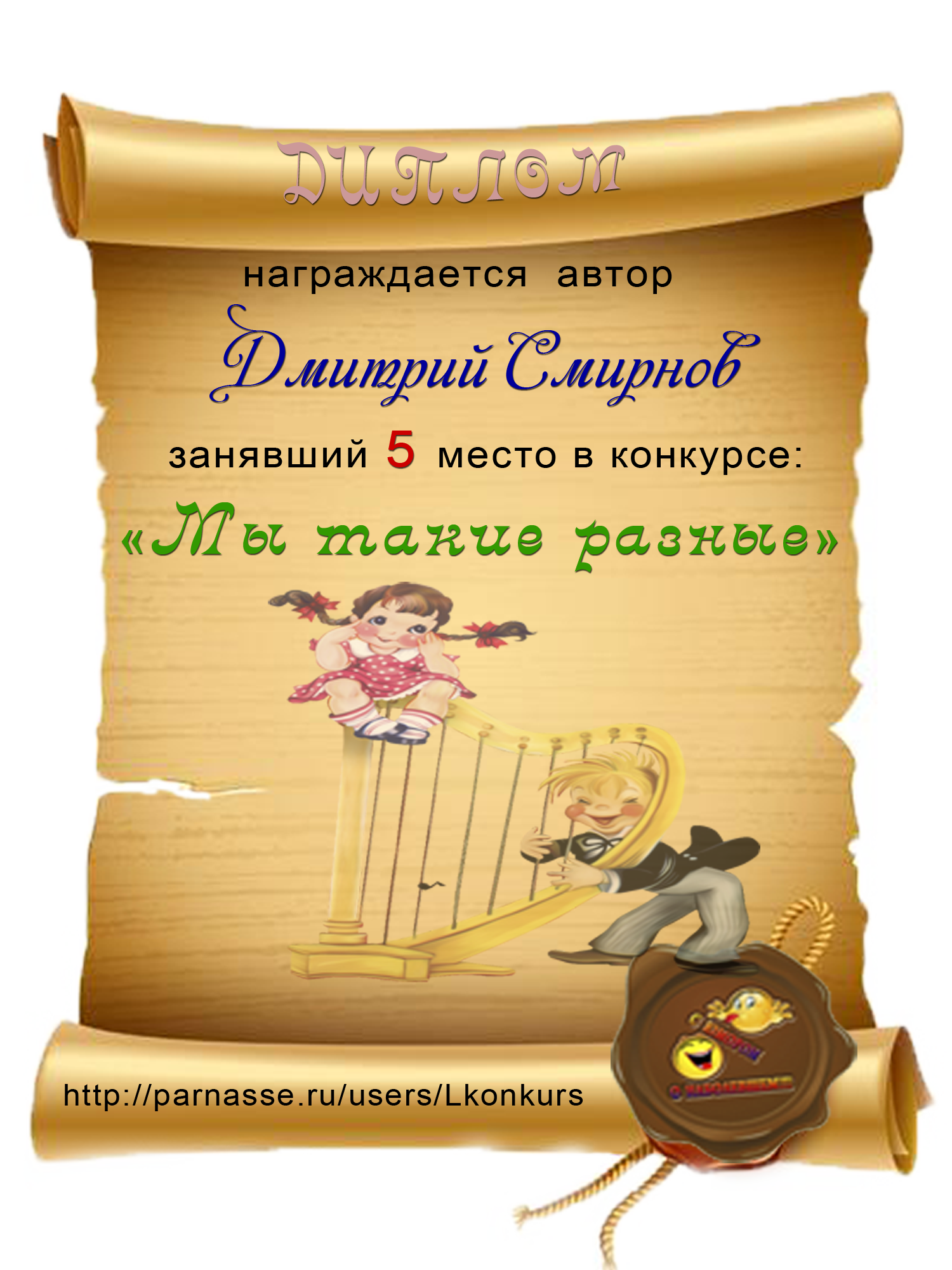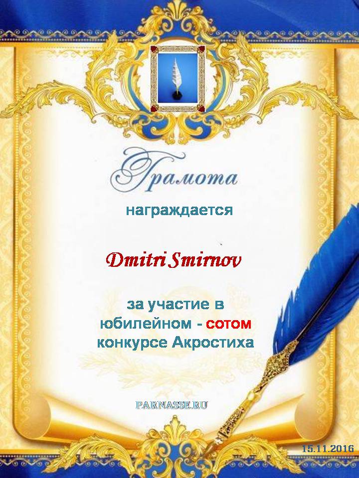 Диплом победителю в конкурсах Акростиха в связи с пятилетием конкурса Акростиха!