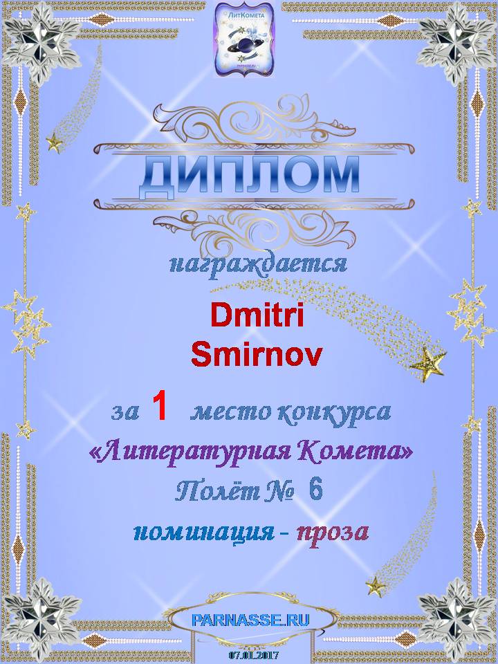 Вручается за 3 место в конкурсе "Литературная Комета - Полёт № 50" - Номинация Проза