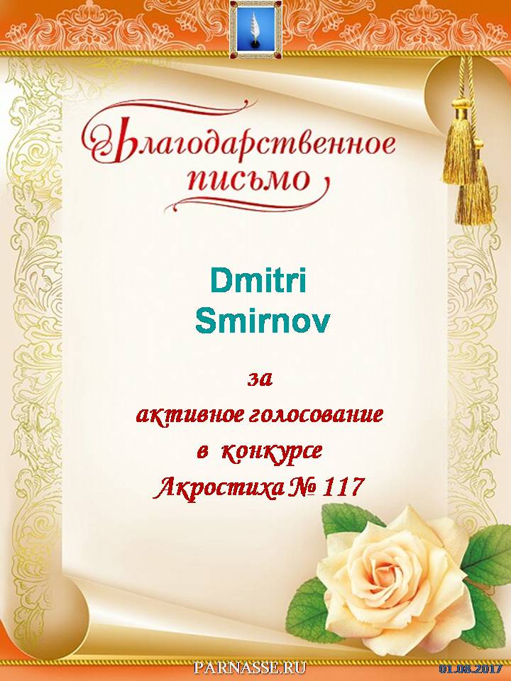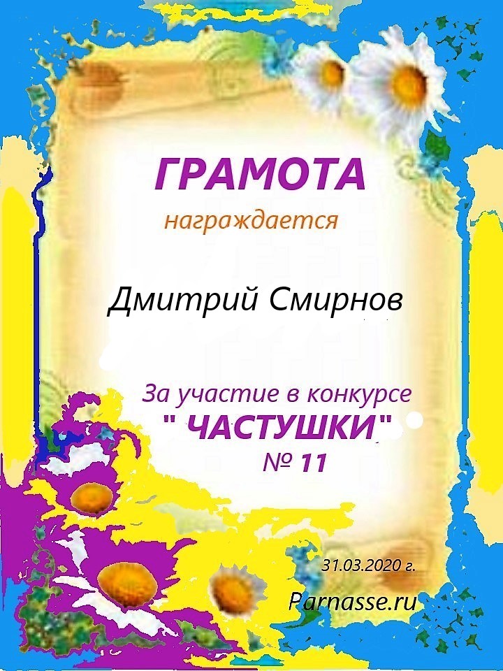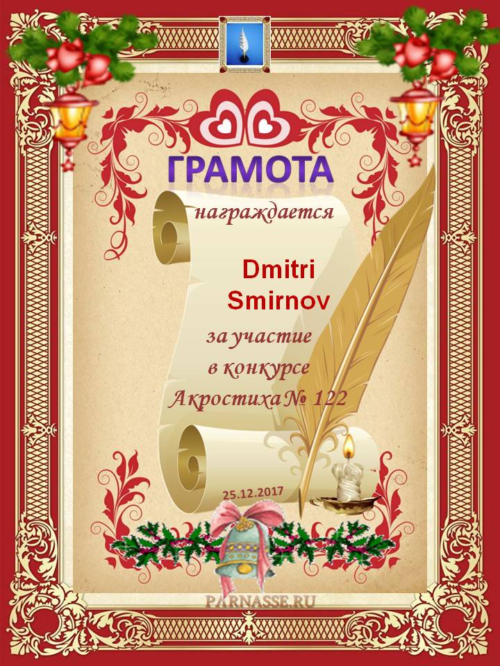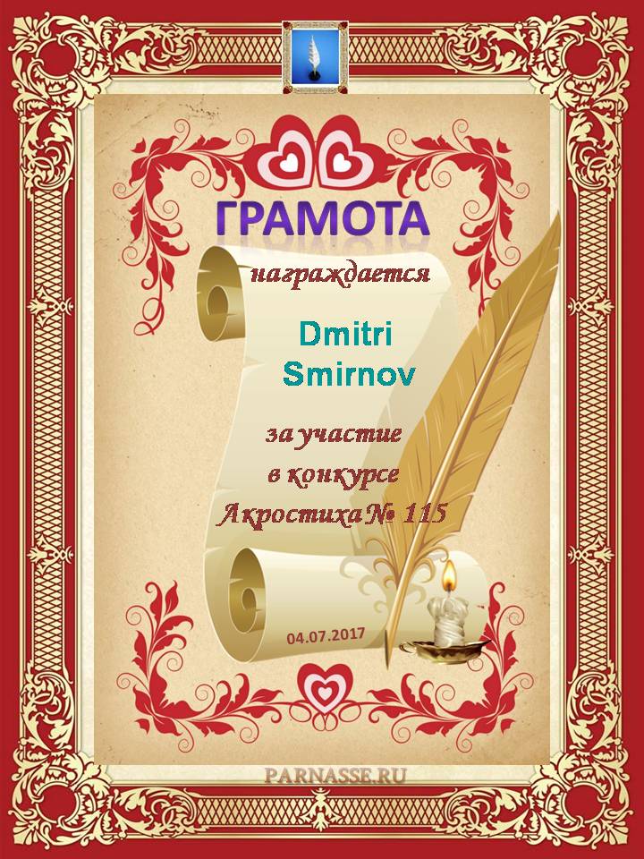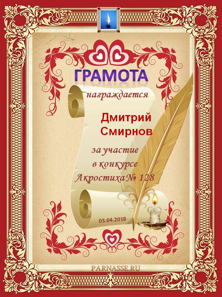 Грамота за 4 место в 96 конкурсе АКРОСТИХА (Альтернатива)! ПОЗДРАВЛЯЮ!