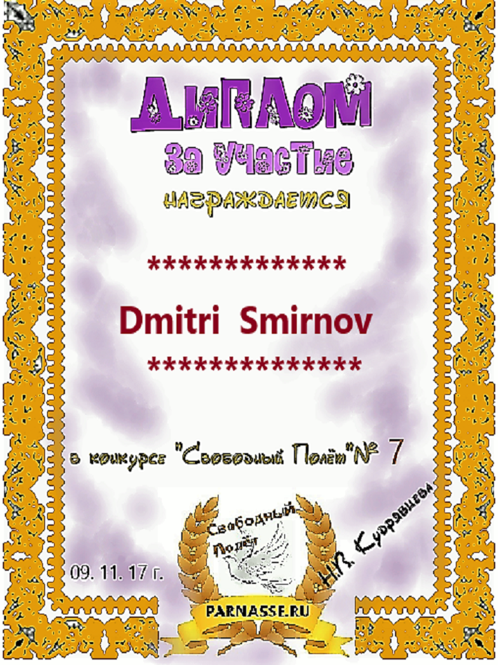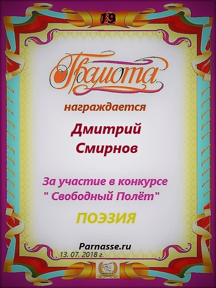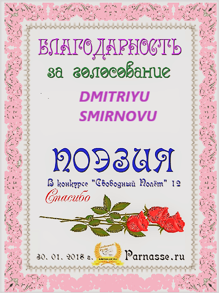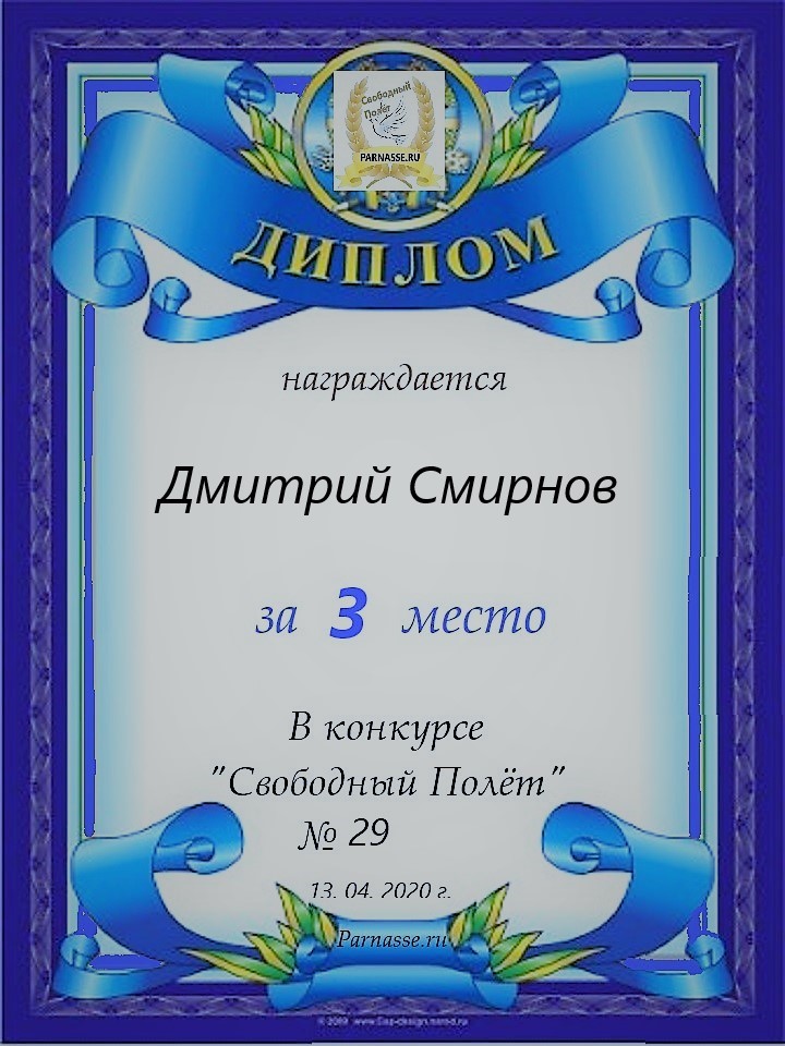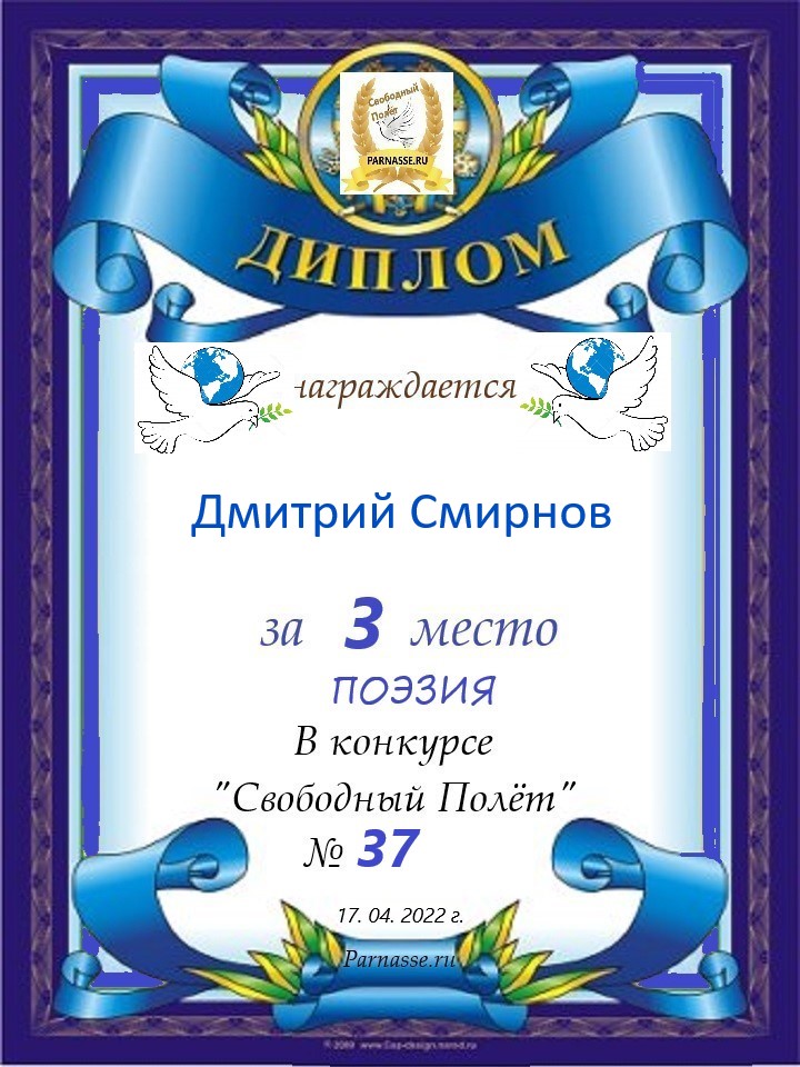 за 3 место в конкурсе "Свободный Полёт" № 37 ПОЭЗИЯ