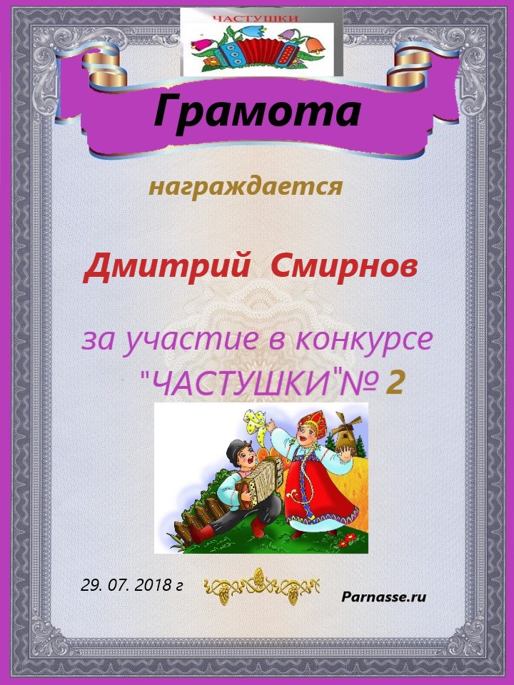 за участие в конкурсе "ЧАСТУШКИ" 11