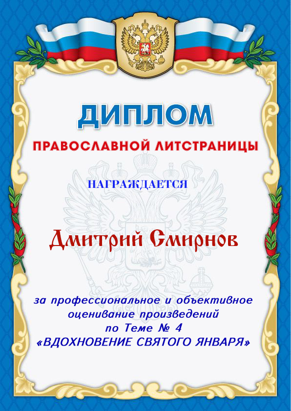 Диплом III-й степени на Православной Литературной Странице,