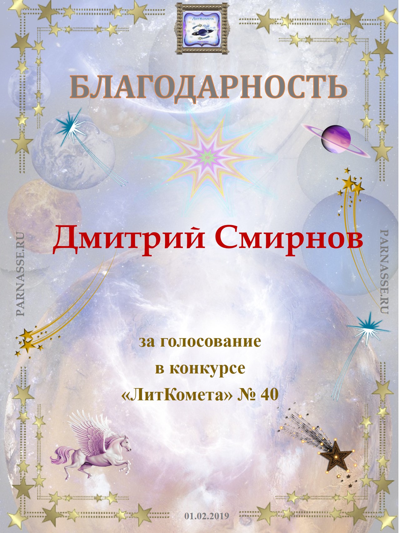 Поздравляю с занятым 3 местом в конкурсе “Литературная Комета – Полёт № 45» - Номинация Поэзия