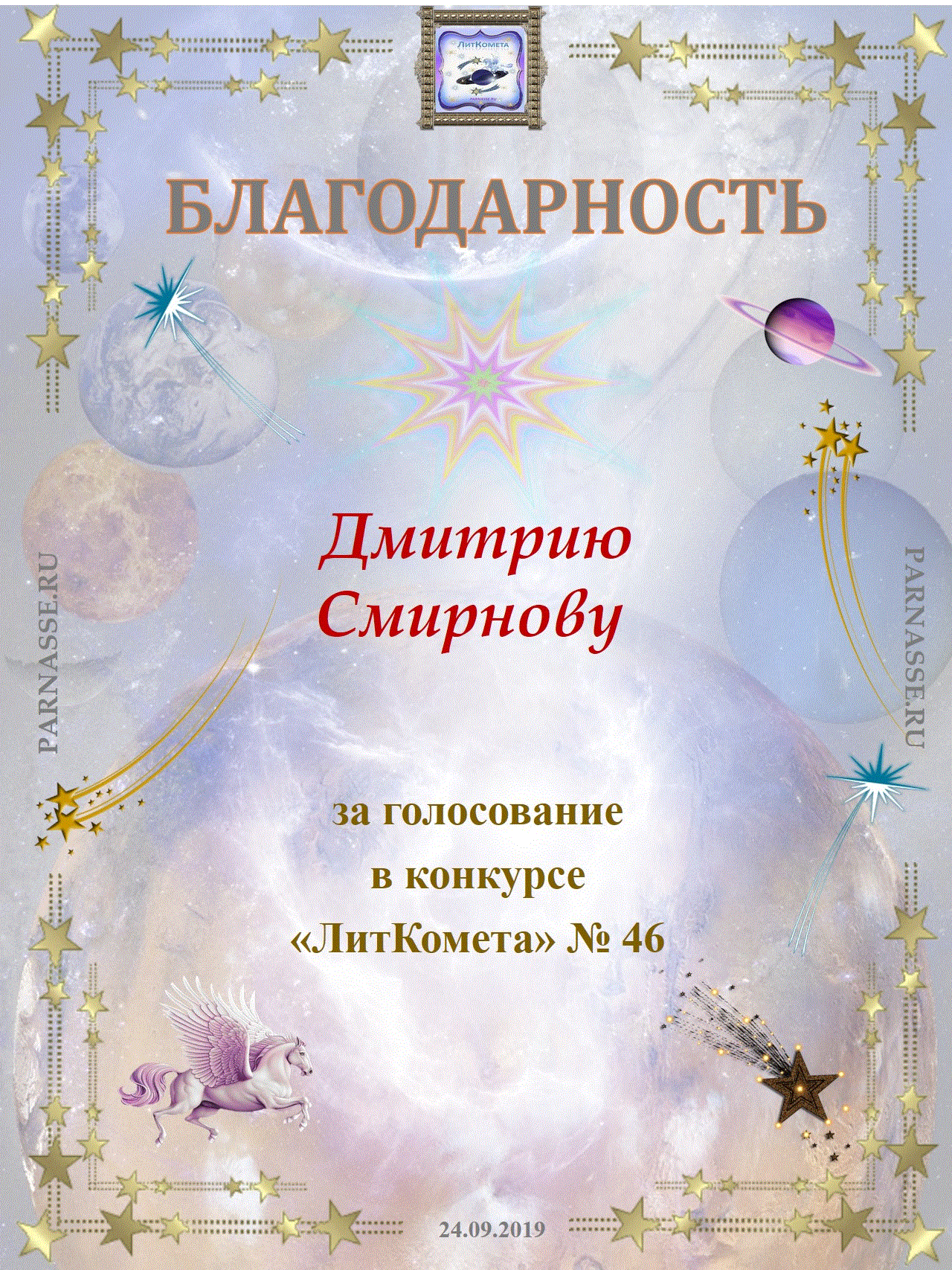 за поддержку конкурса "ЛитКомета - Полёт № 46"