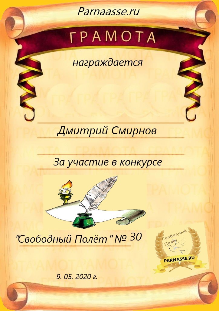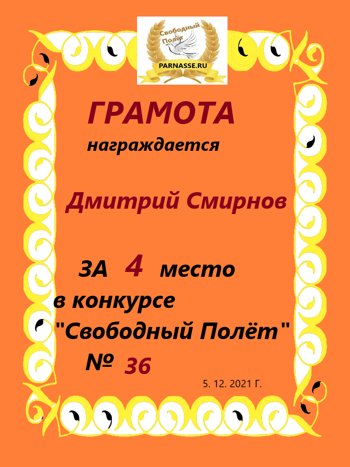 за 4 место в конкурсе "Свободный Полёт" № 36 ПОЭЗИЯ