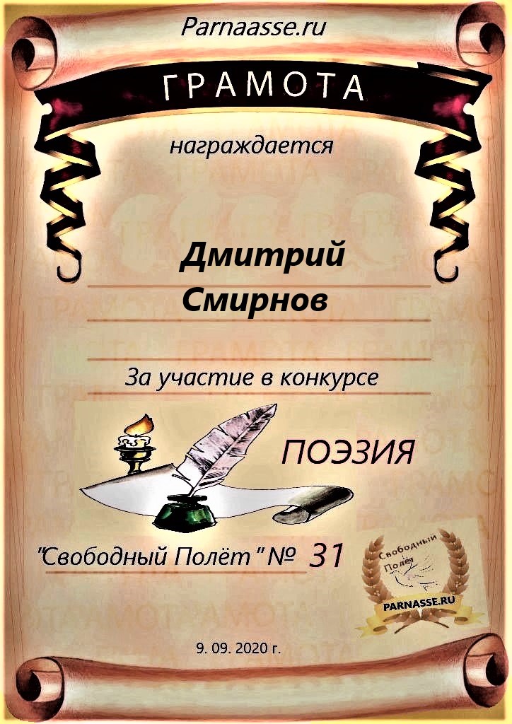 за участие в конкурсе"Свободный Полёт" № 31. ПОЭЗИЯ
