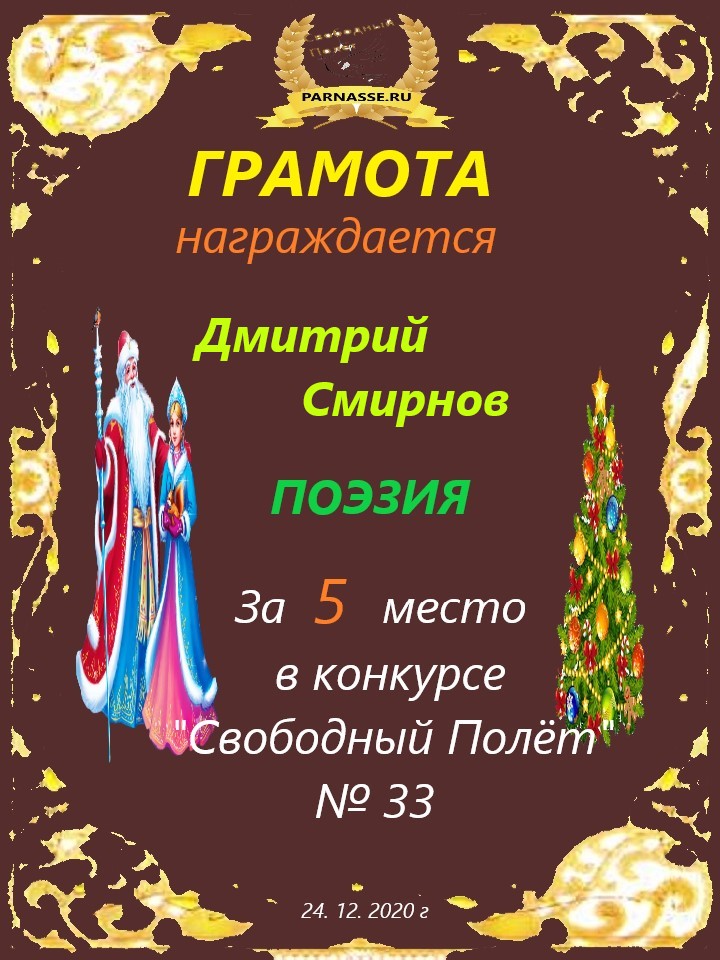 за 5 место в конкурсе "Свободный Полёт" № 33. ПОЭЗИЯ