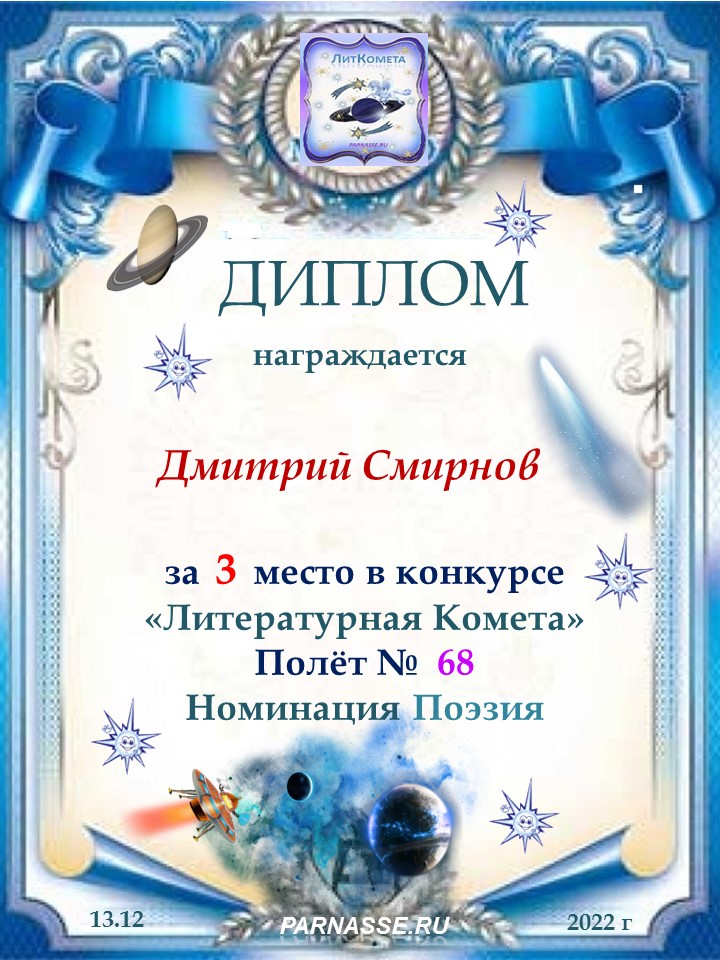 За 3 место - Номинация Поэзия, ЛитКомета, Полёт № 47