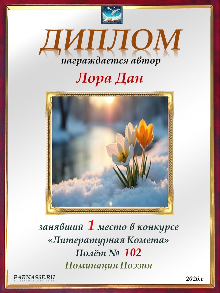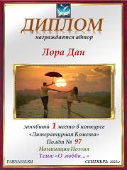 Поздравляю с занятым 1 местом в конкурсе "Литературная Комета - Полёт № 56" - Номинация Поэзия!