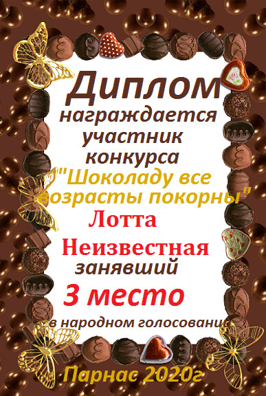 Третье место по итогам конкурса «Всё будет в шоколаде!", народное голосование. Поздравляем с прекрасной победой!