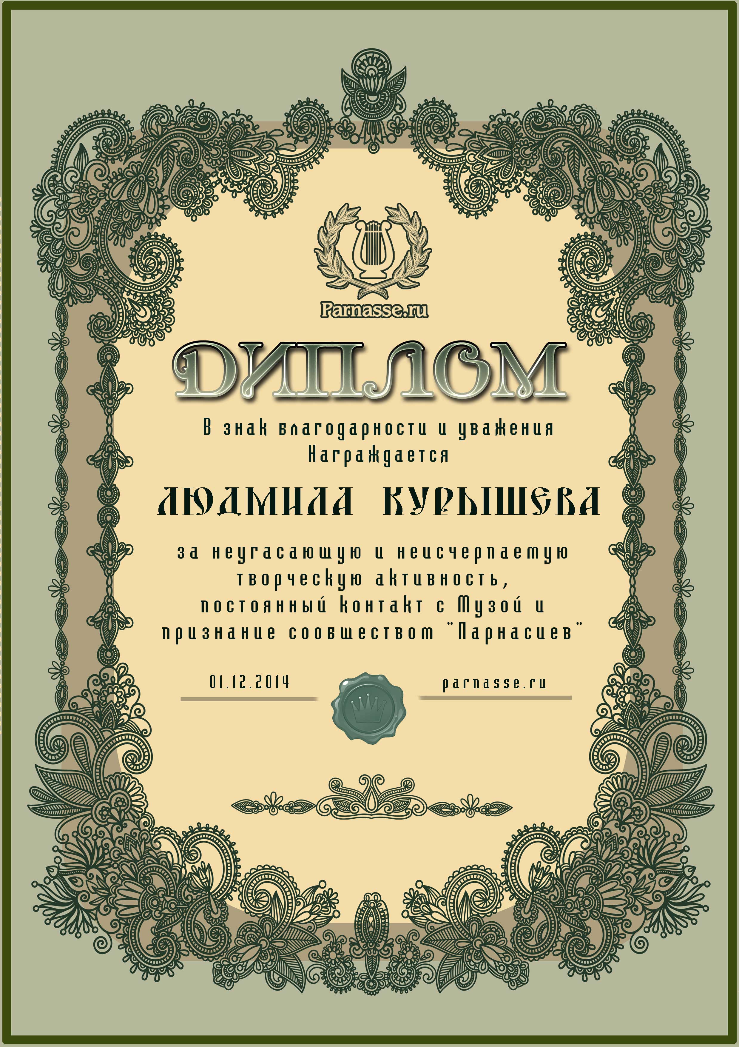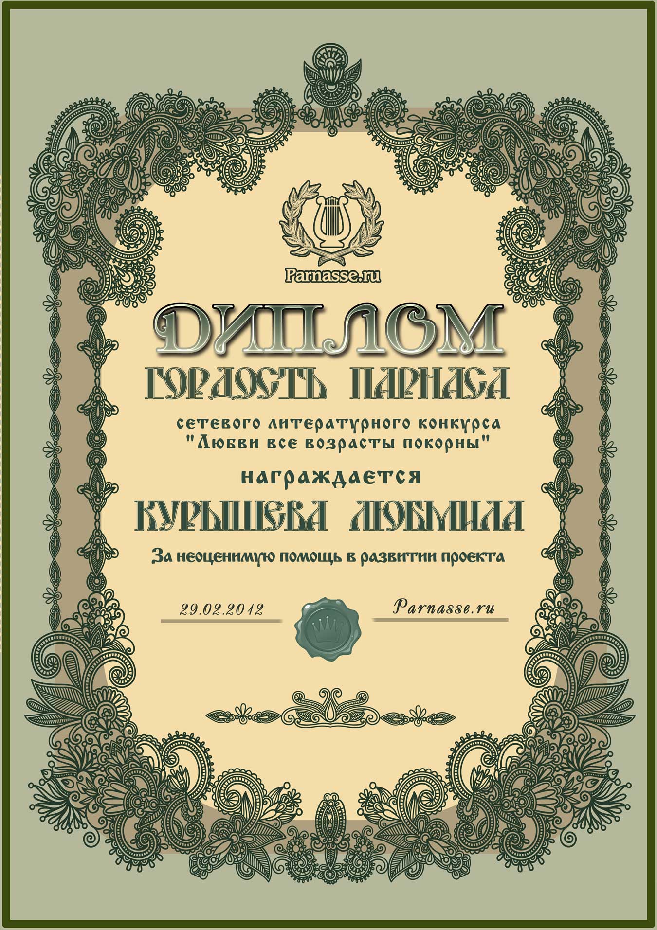 Диплом "Гордость Парнаса"
