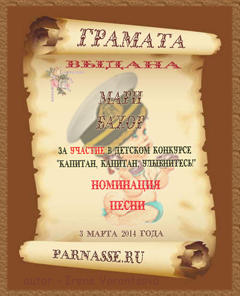 Грамота за участие в детском конкурсе "Капитан, капитан, улыбнитесь"
