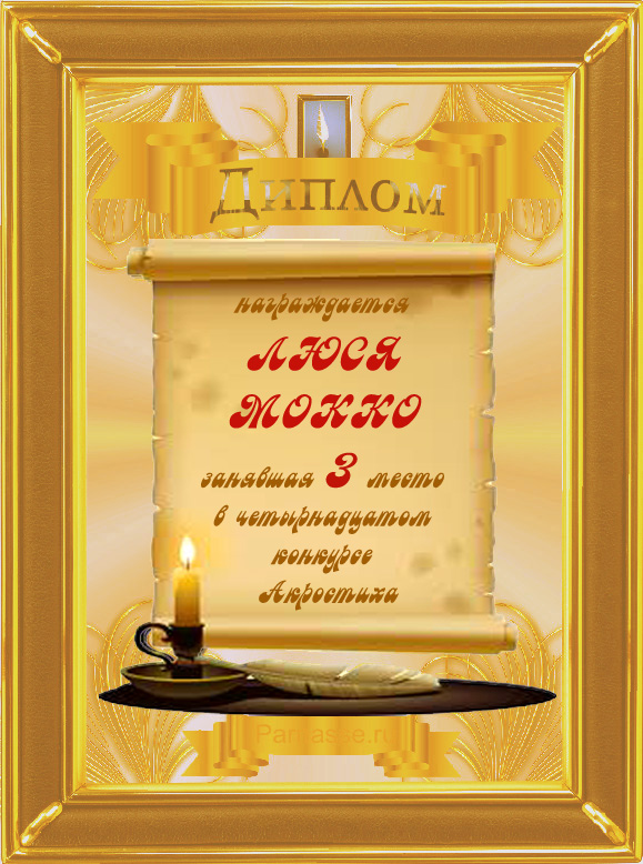 Третье место в 14 выпуске конкурса Акростиха, посвященном Дню Великой Победы! Поздравляем с блестящей победой!
