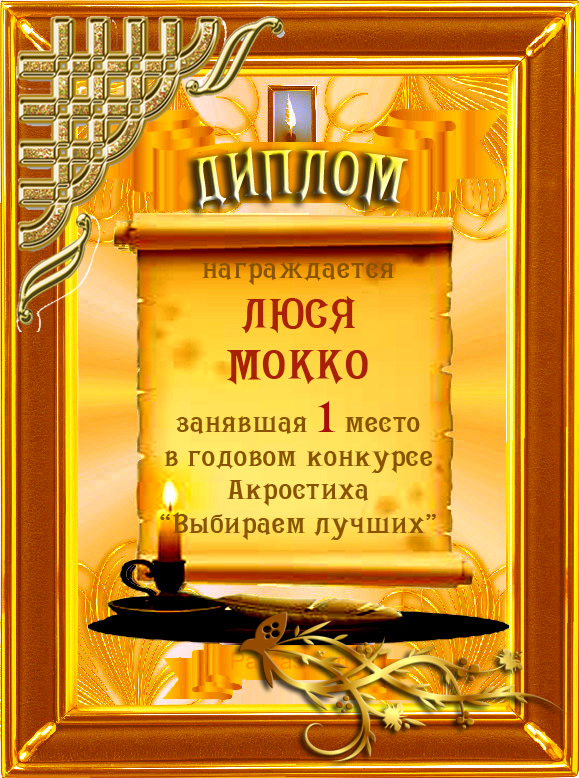 Третье место в музыкально-литературном конкурсе "Вкусный-2". Номинация "Вкусные стихи". Народное голосование. Произведение "Волшебный "Мокко" ". Поздравляем с красивой победой!