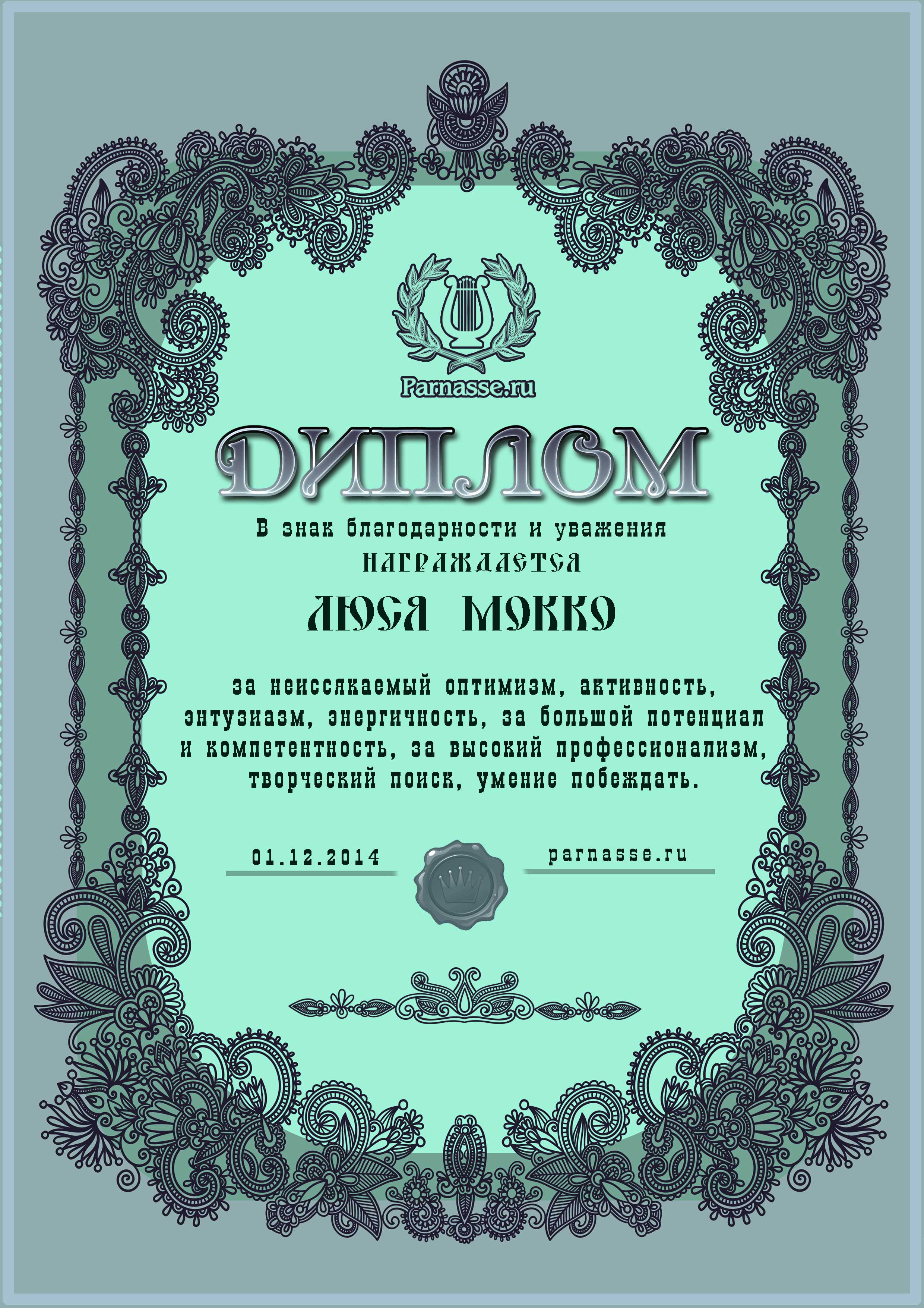 За беспристрастное судейство музыкально-литературного конкурса «О Победе с гордостью, о павших – с почтением!» За литературное мастерство и высокий профессионализм! Огромное спасибо, Дорогая Людмила, за то, что Вы с нами, на Парнасе!