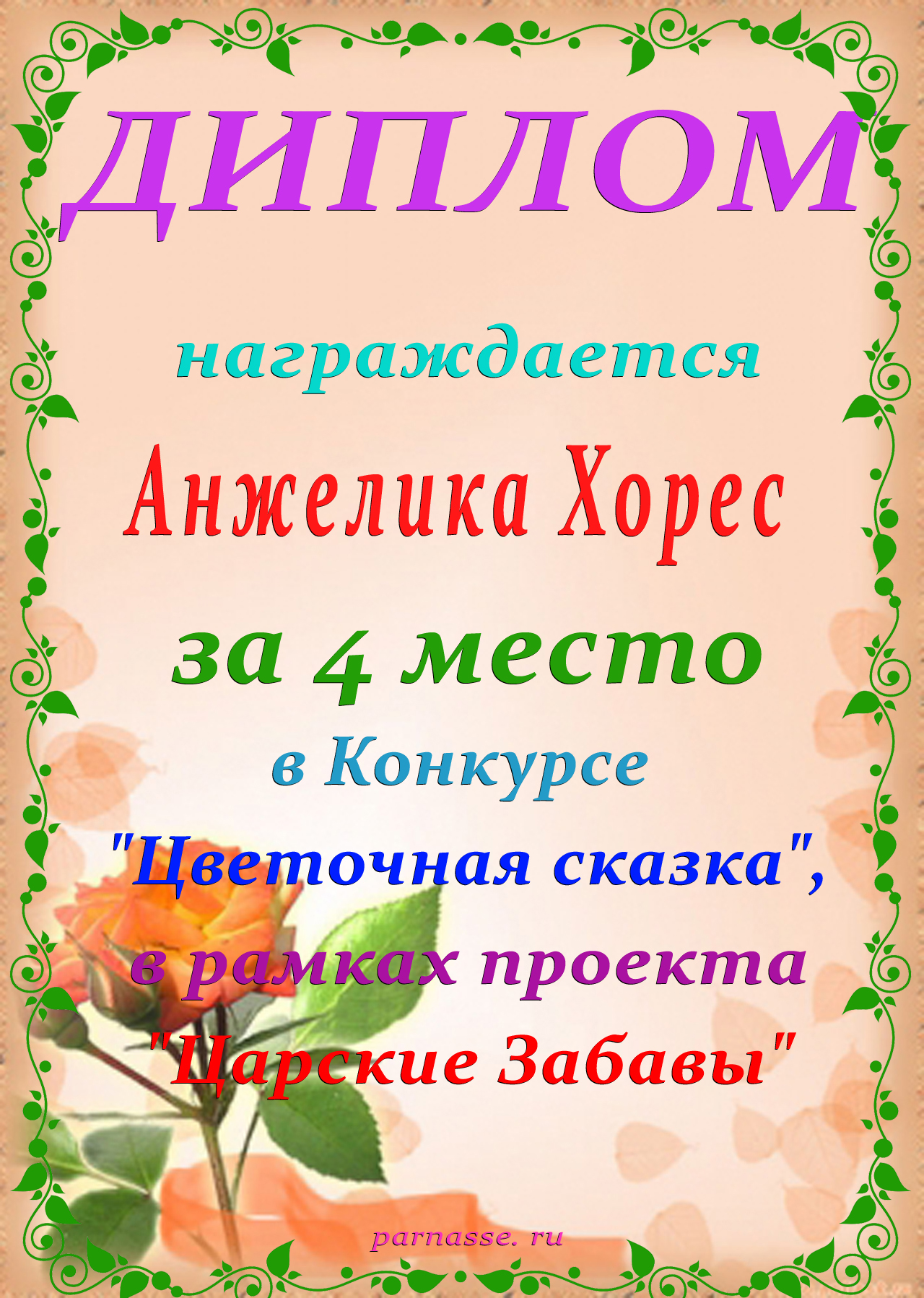 3 место в конкурсе "О цветах с любовью" (проза) в рамках проекта "Царские Забавы"