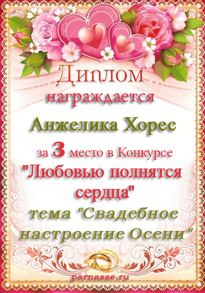 Диплом за 3 место в конкурсе "Дню всех Влюблённых посвящая"