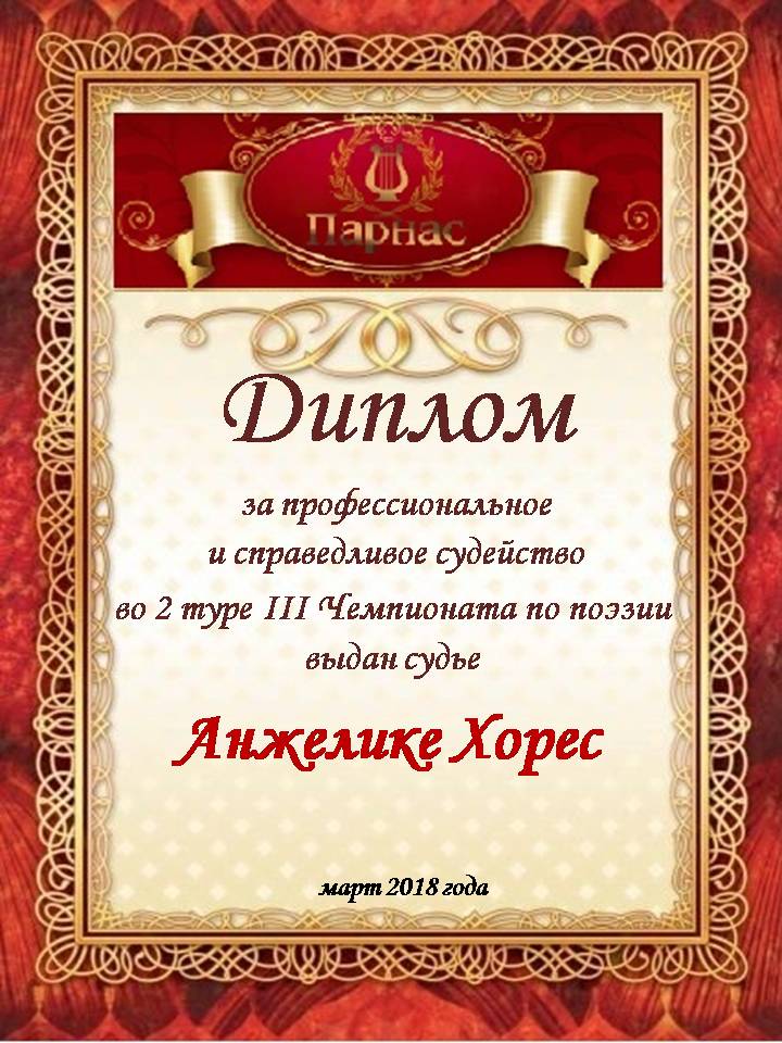 Спасибо за высокопрофессиональное и объективное судейство во 2 туре III Чемпионата Поэзии!