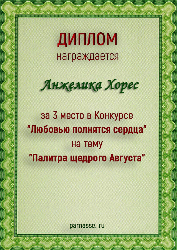Первое место в конкурсе " Чуть помедленнее, Август", судейское голосование. Поздравляем с прекрасной победой!