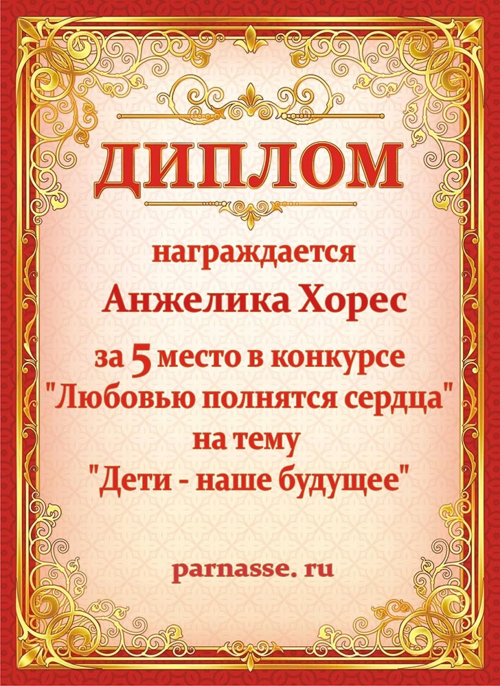 За 5 место в конкурсе "Любовью полнятся сердца" на тему "Дети - наше будущее"