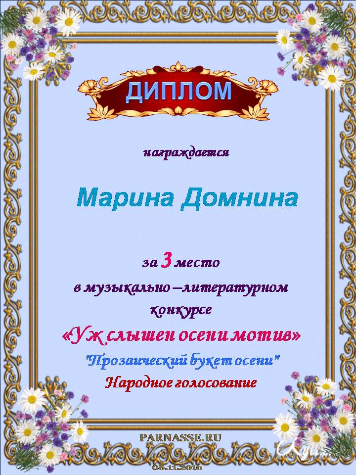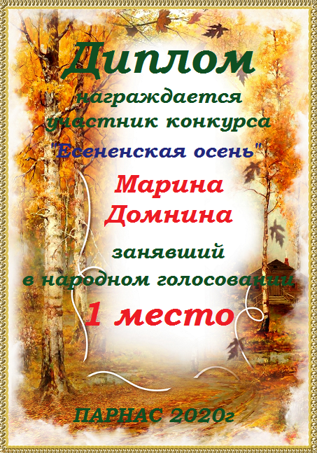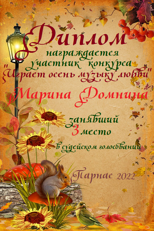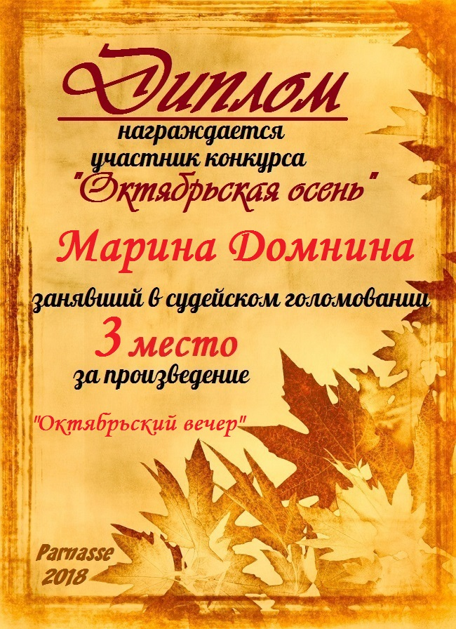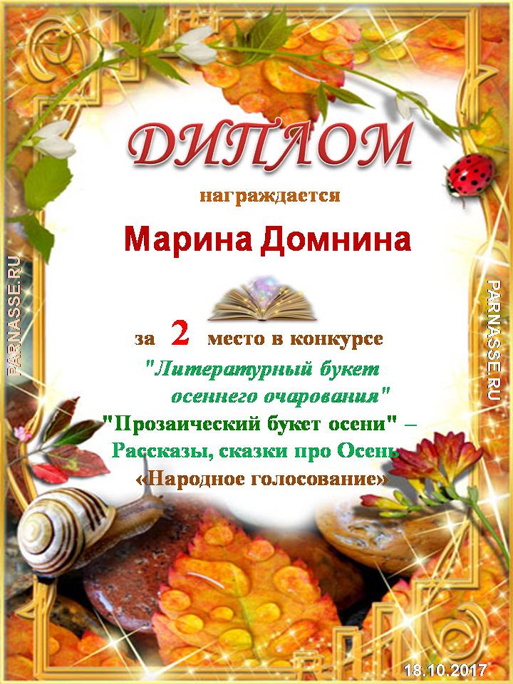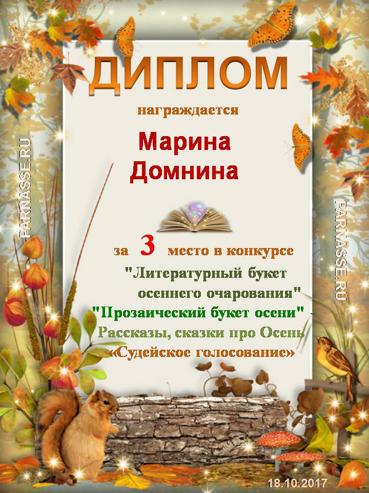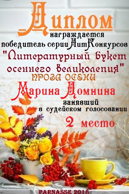 Поздравляем с 3 местом в конкурсе "Литературный букет осеннего очарования" - номинация Проза, судейское голосование!