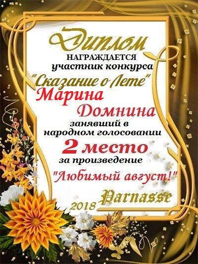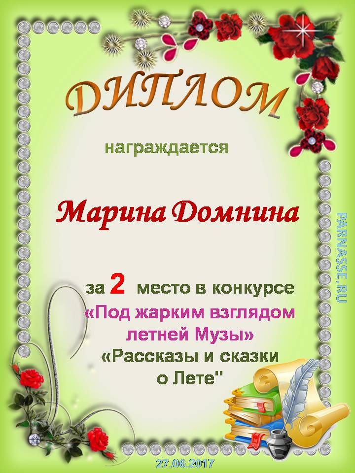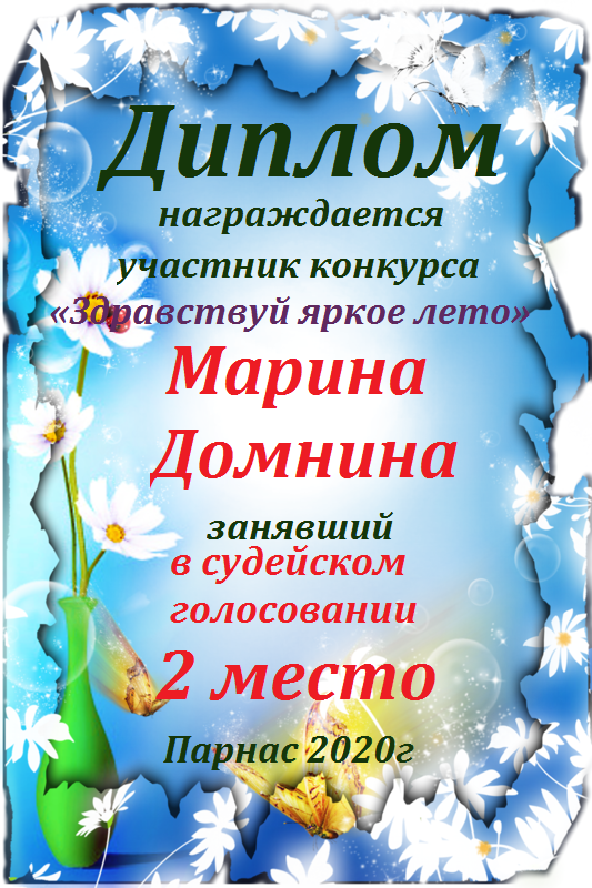 Победителю конкурса: "Под жарким взглядом летней музы". Поздравляем со 2 местом в номинации - "Рассказы, сказки о лете"