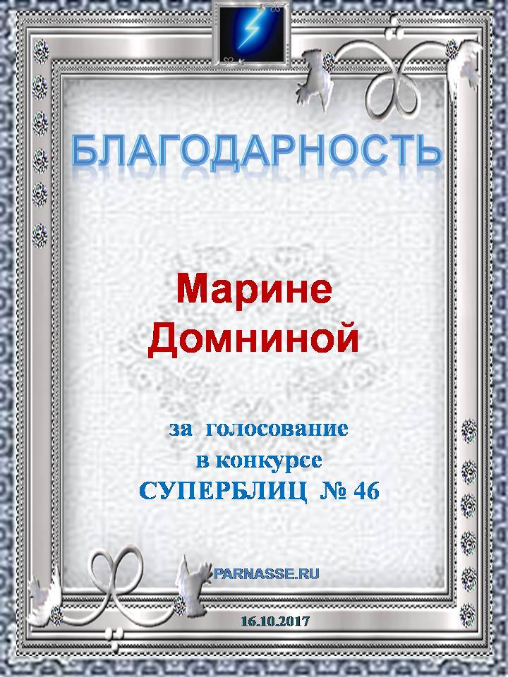 Благодарность за активное голосование в 46 конкурсе СУПЕРБЛИЦА!СПАСИБО БОЛЬШОЕ!