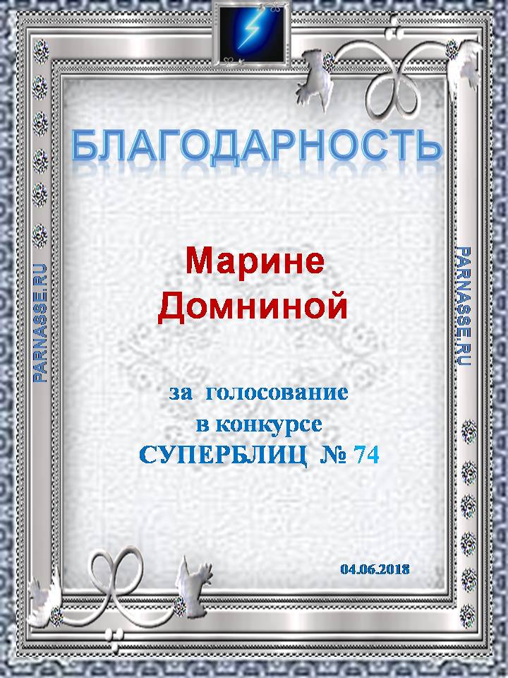 Благодарность за активное голосование в 74 конкурсе СУПЕРБЛИЦА!СПАСИБО БОЛЬШОЕ!