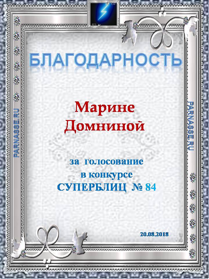Благодарность за активное голосование в 84 конкурсе СУПЕРБЛИЦА!СПАСИБО БОЛЬШОЕ!
