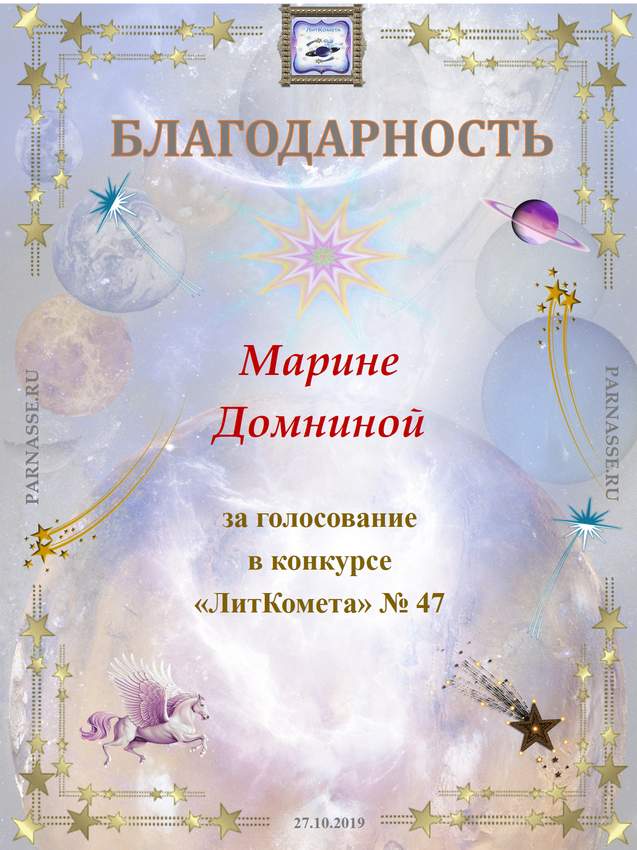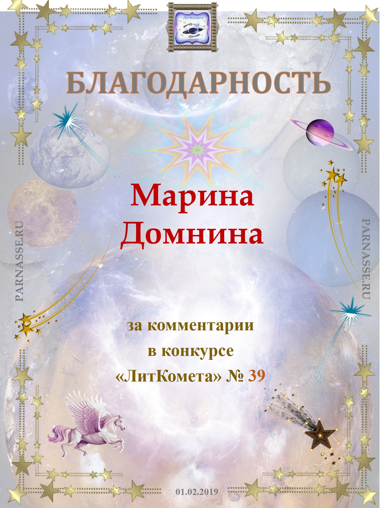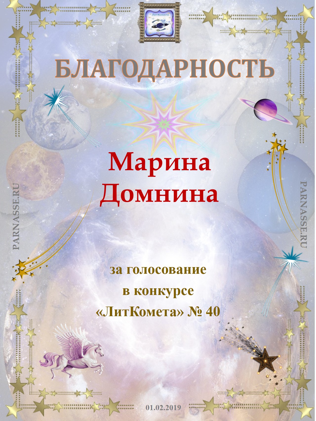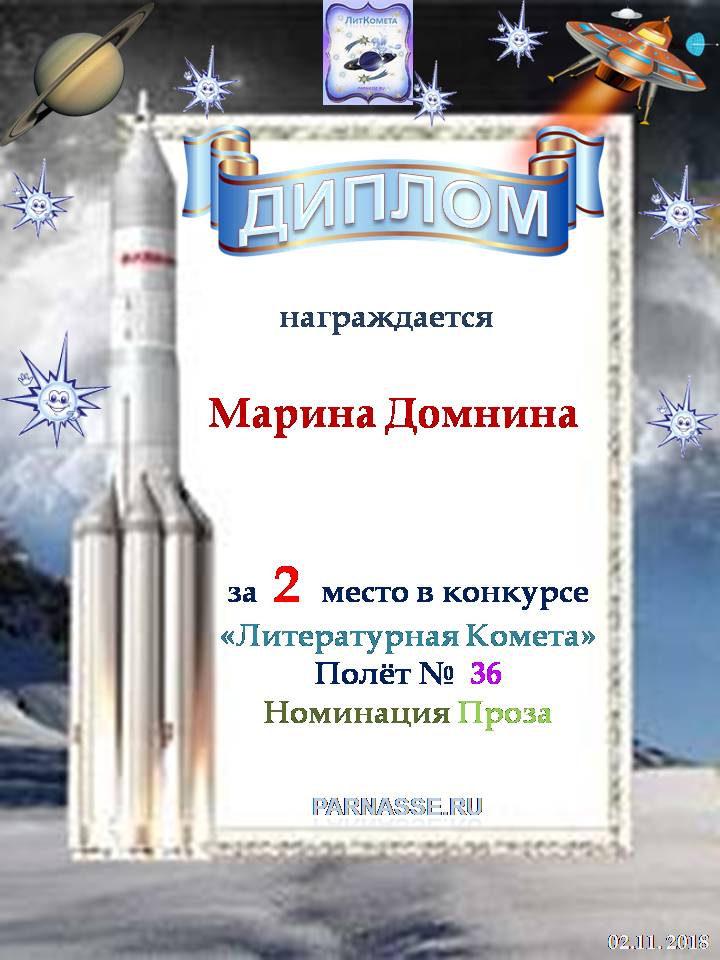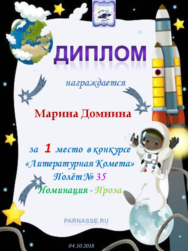 Поздравляю с занятым 1 местом в конкурсе «Литературная Комета – Полёт № 34» - номинация проза