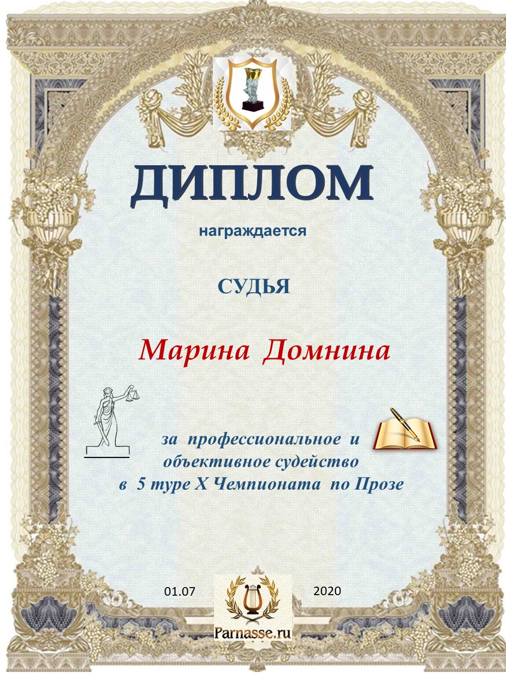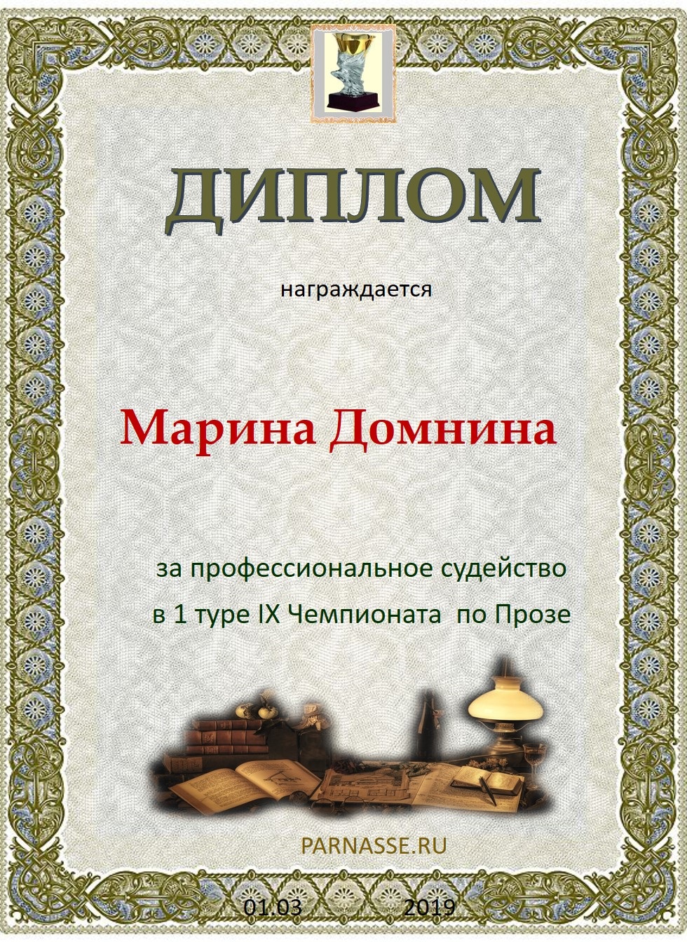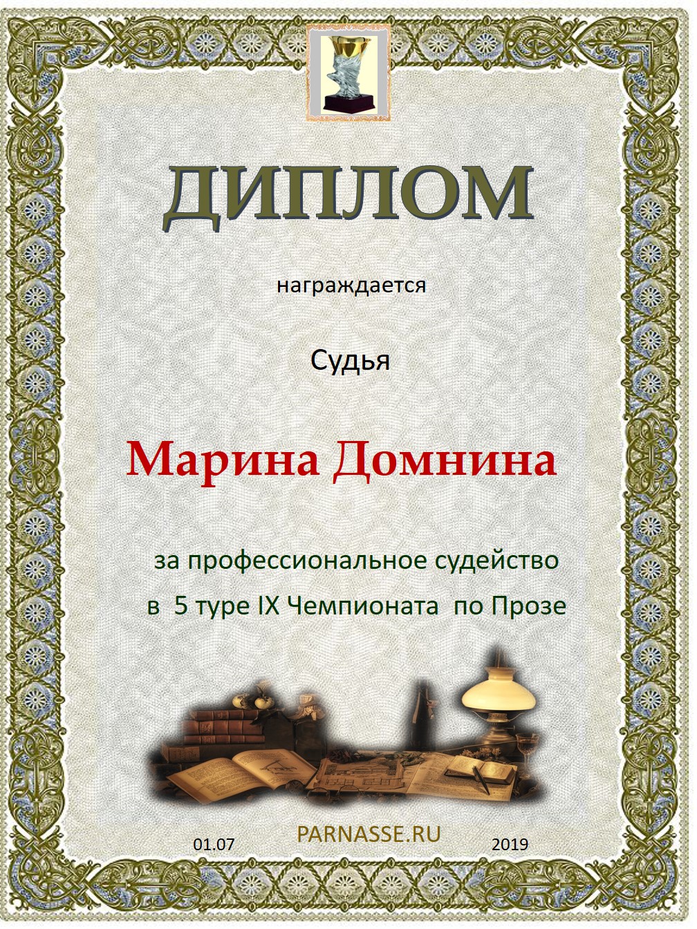 Спасибо за объективное и высокопрофессиональное судейство в 5 туре IX Чемпионата Парнаса по Прозе!