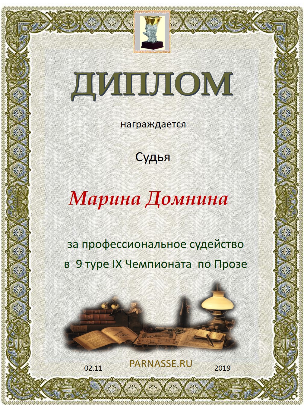 Спасибо за высокопрофессиональное судейство в 9 туре IX Чемпионата Парнаса по Прозе!