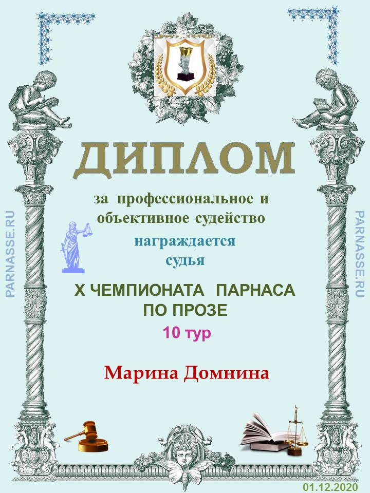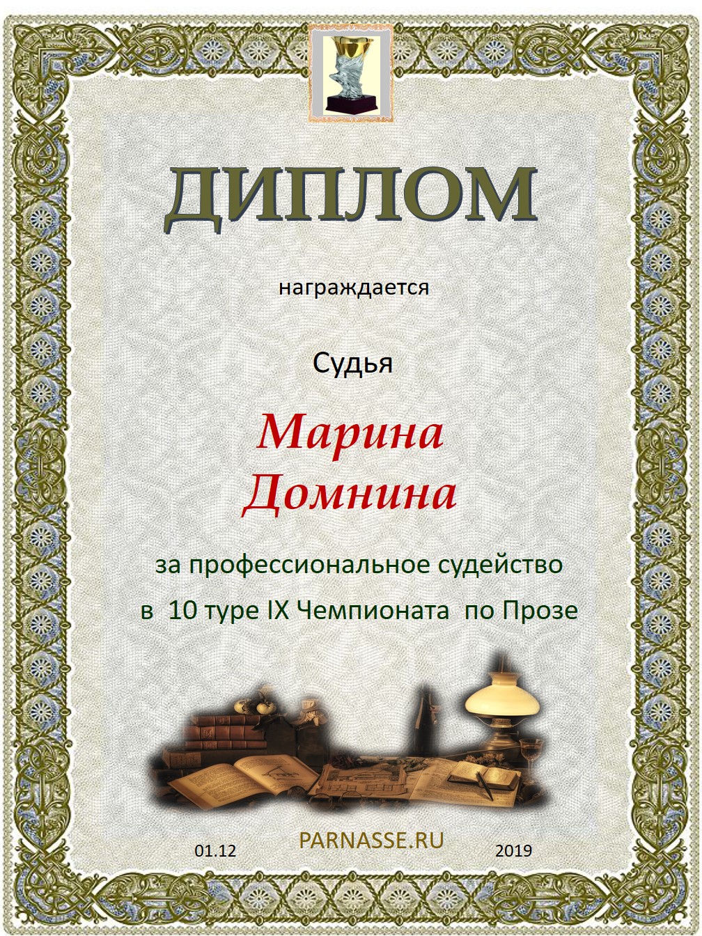 Спасибо за профессиональное и объективное судейство в 10 туре IX Чемпионата Парнаса по Прозе!