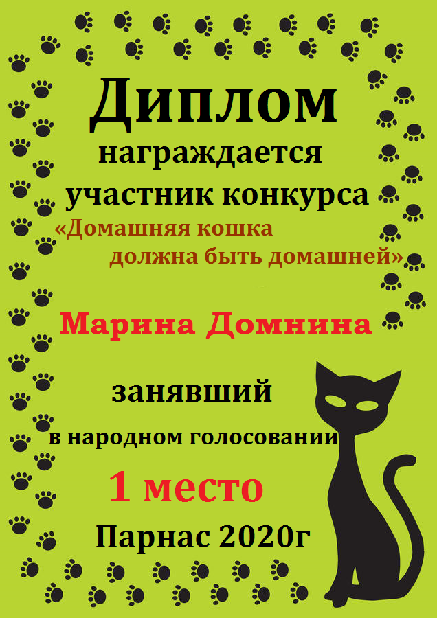 Второе место по итогам конкурса "Мой нежный и ласковый друг"