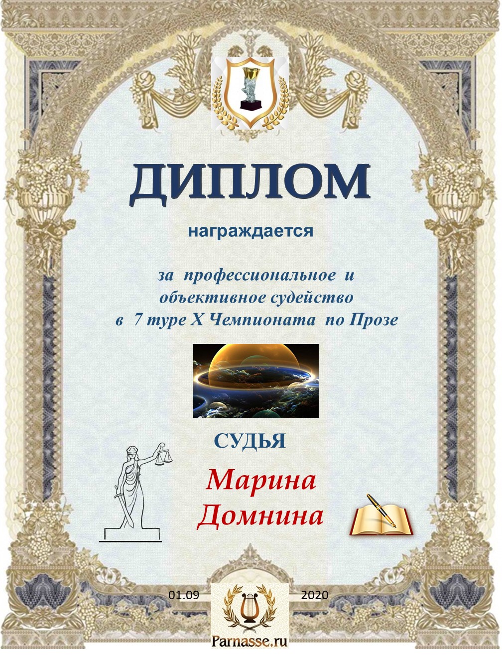 Спасибо за объективное и высокопрофессиональное судейство в 7 туре IX Чемпионата Парнаса по Прозе!