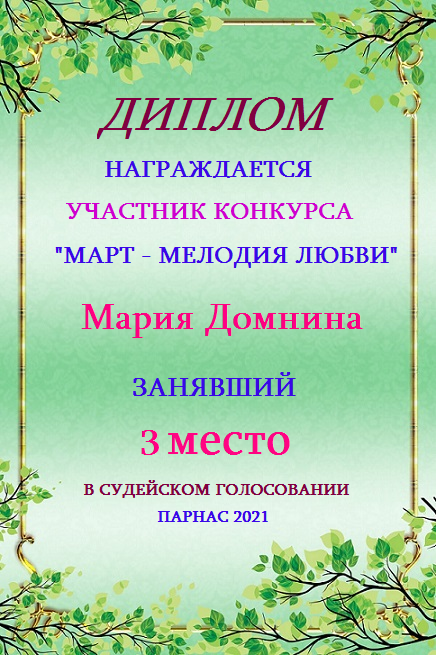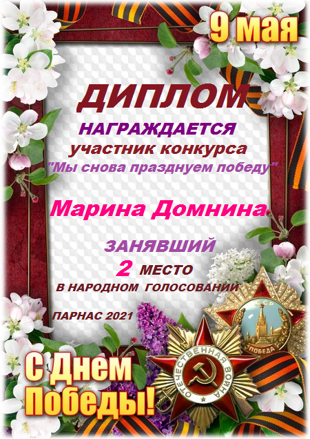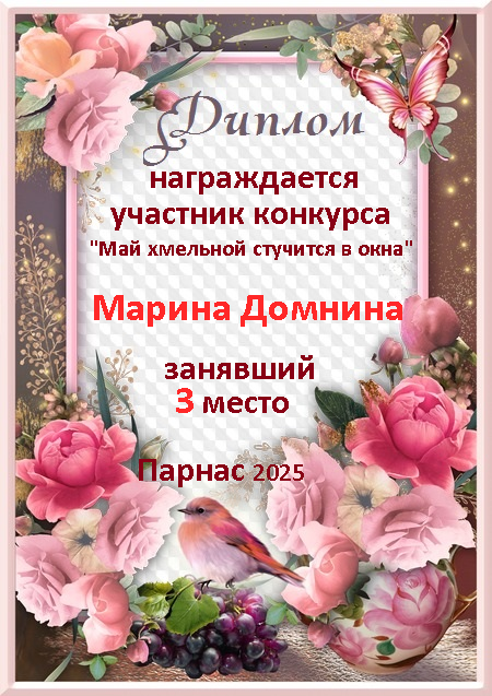 3 место место в судейском голосовании по итогам конкурса "Май хмельной стучится в окна"