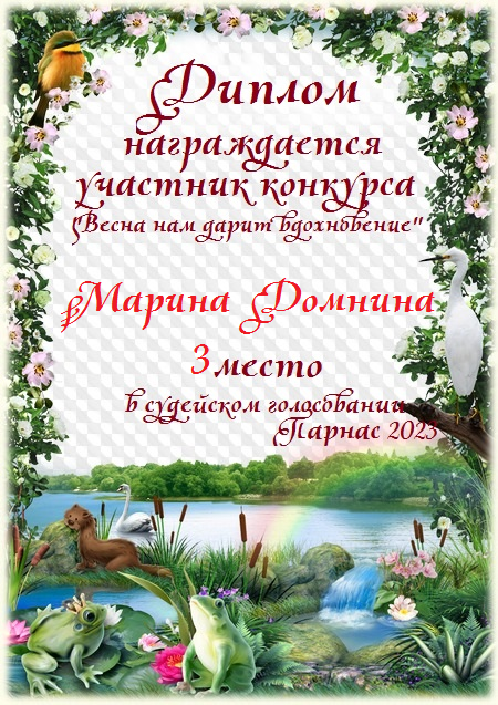 Третье место в судейском голосовании по итогам конкурса: «Пусть все птицы о счастье поют»