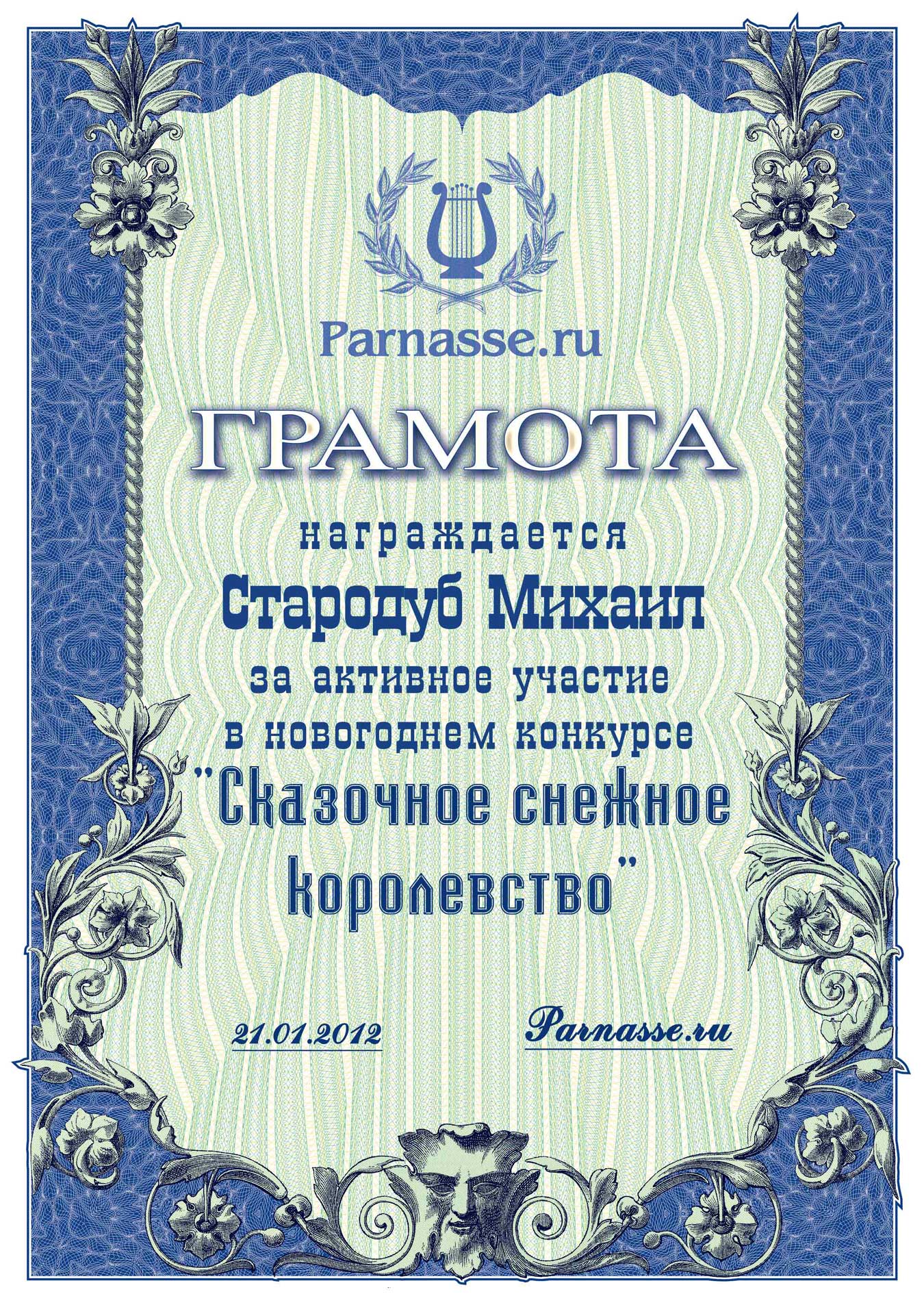 Уважаемый Михаил!Спасибо Вам большое за высокопрофессиональное, объективное судейство конкурсов на Парнасе!