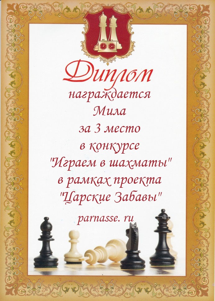 3 место в конкурсе "Играем в шахматы" в рамках проекта "Царские Забавы"
