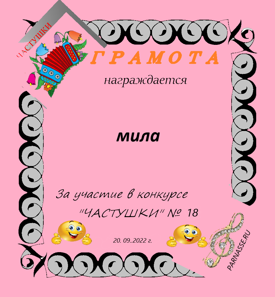 за участие в конкурсе "ЧАСТУШКИ" № 18